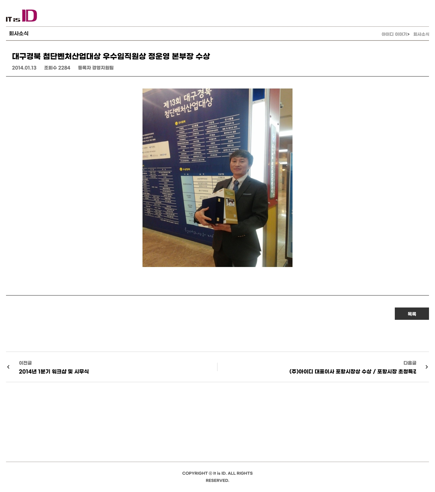 대구경북 첨단벤처산업대상 우수임직원상 정운영 본부장 수상