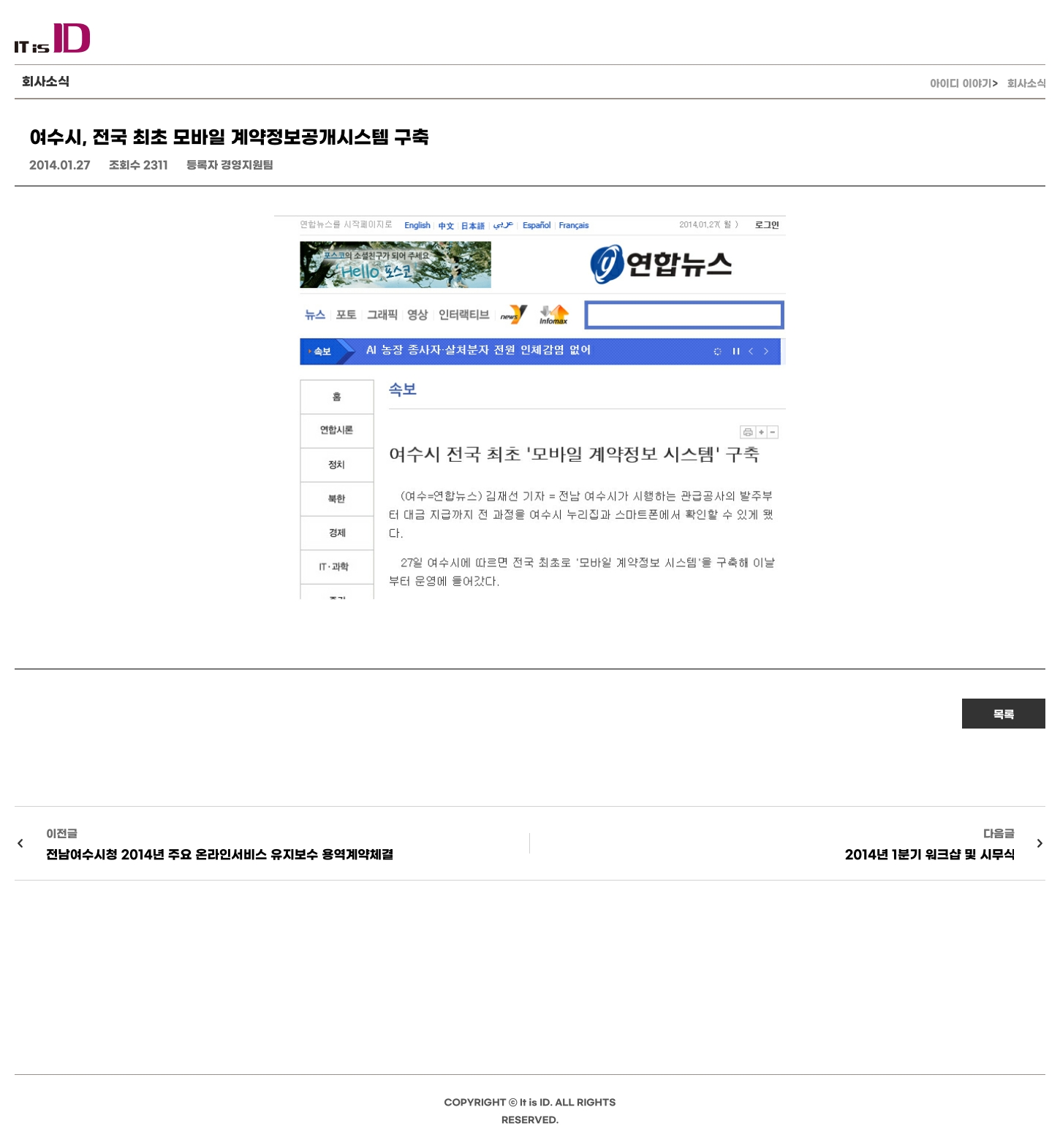 여수시, 전국 최초 모바일 계약정보공개시스템 구축