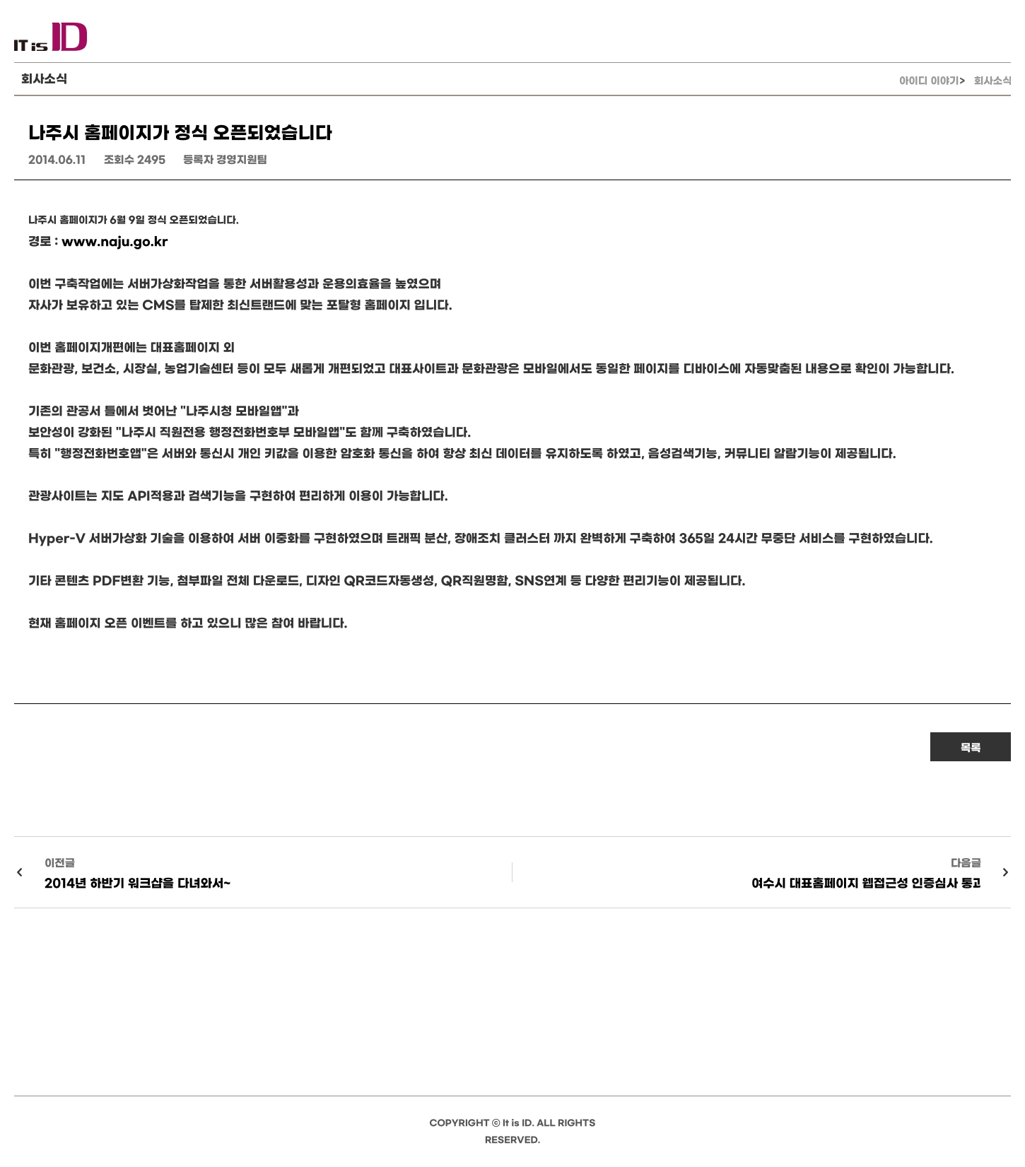 나주시 홈페이지가 6월 9일 정식 오픈되었습니다.