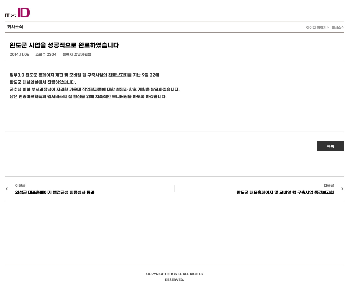정부3.0 완도군 홈페이지 개편 및 모바일 웹 구축사업의 완료보고회를 지난 9월 22에