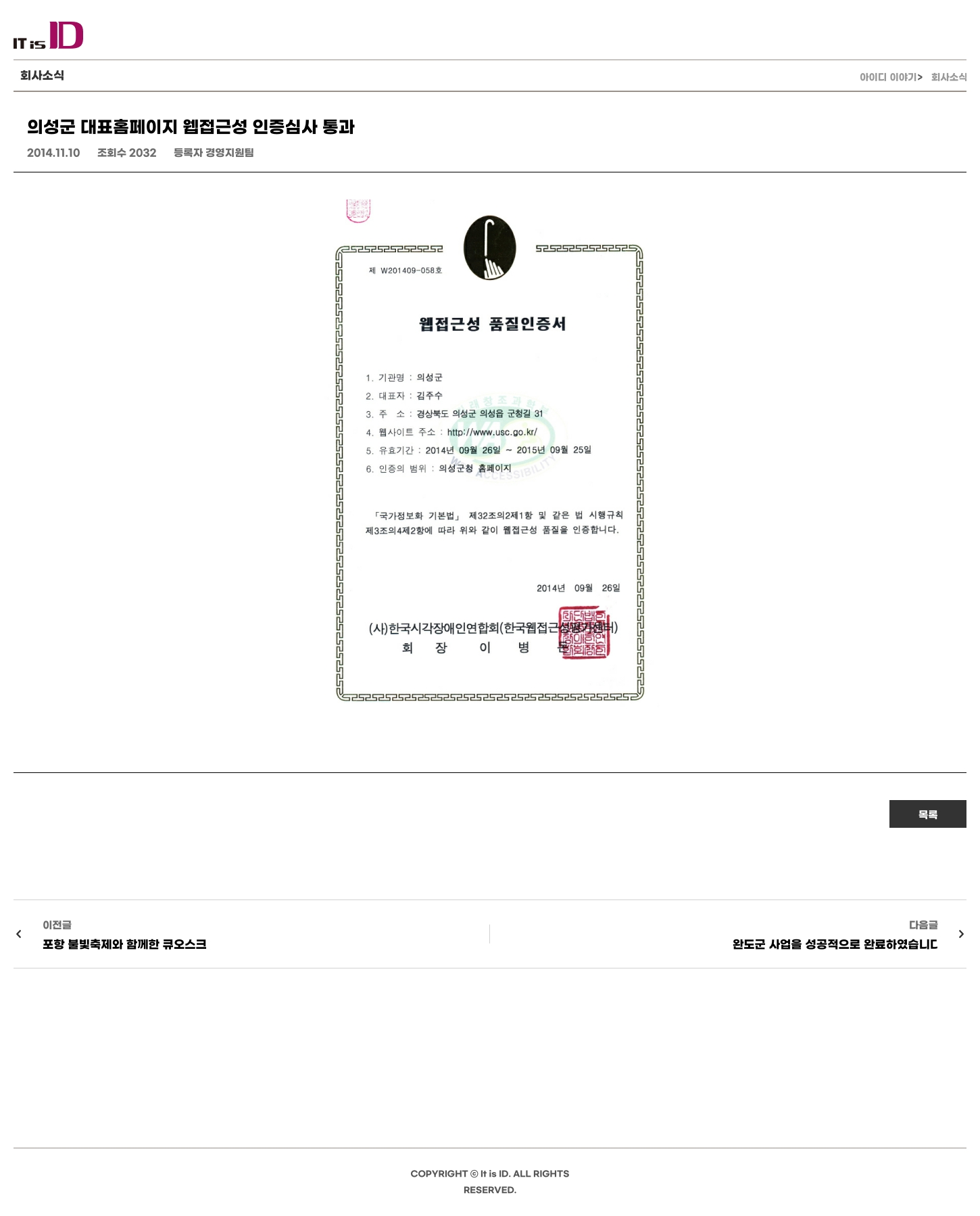의성군 대표홈페이지 웹접근성 인증심사 통과