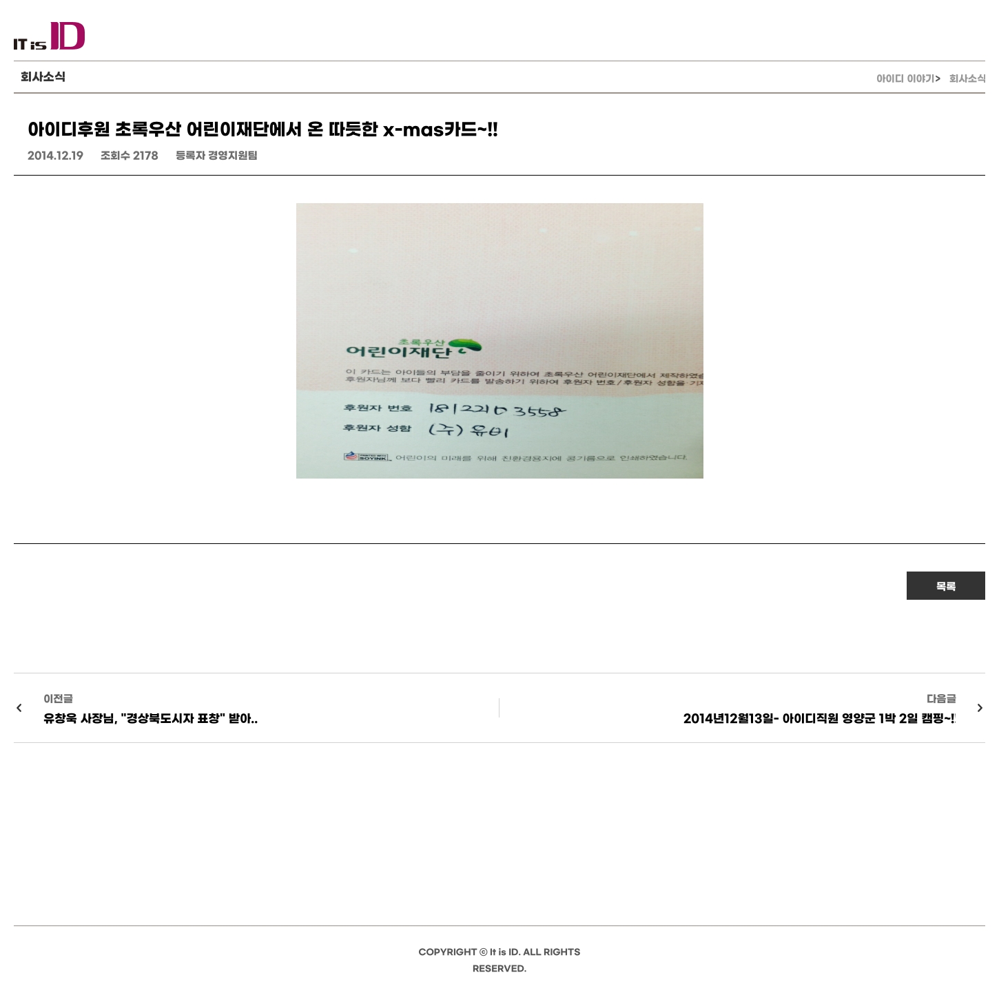 아이디후원 초록우산 어린이재단에서 온 따듯한 x-mas카드~!!
