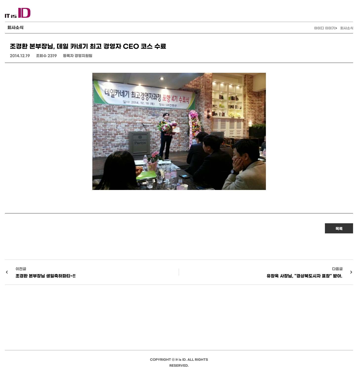 조경환 본부장님, 데일 카네기 최고 경영자 CEO 코스 수료