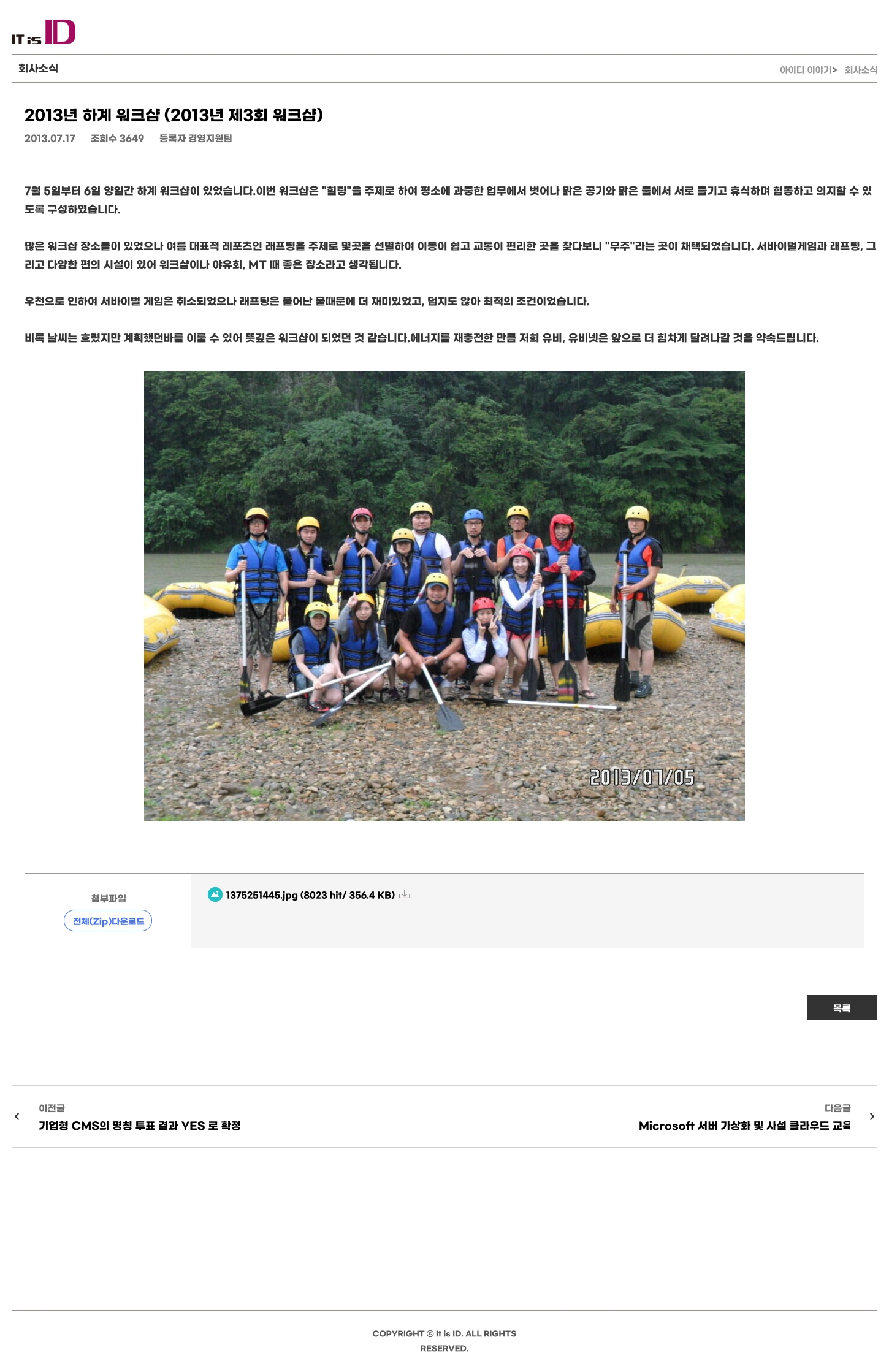 많은 워크샵 장소들이 있었으나 여름 대표적 레포츠인 래프팅을 주제로 몇곳을 선별하여 이동이 쉽고 교통이 편리한 곳을 찾다보니 "무주"라는 곳이 채택되었습니다. 서바이벌게임과 래프팅, 그리고 다양한 편의 시설이 있어 워크샵이나 야유회, MT 때 좋은 장소라고 생각됩니다.