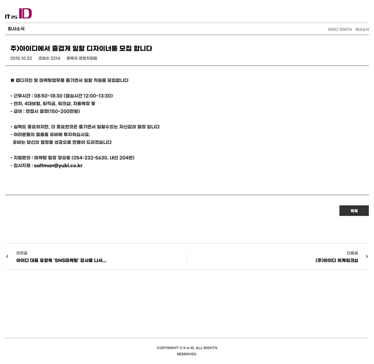 주)아이디에서 즐겁게 일할 디자이너를 모집 합니다