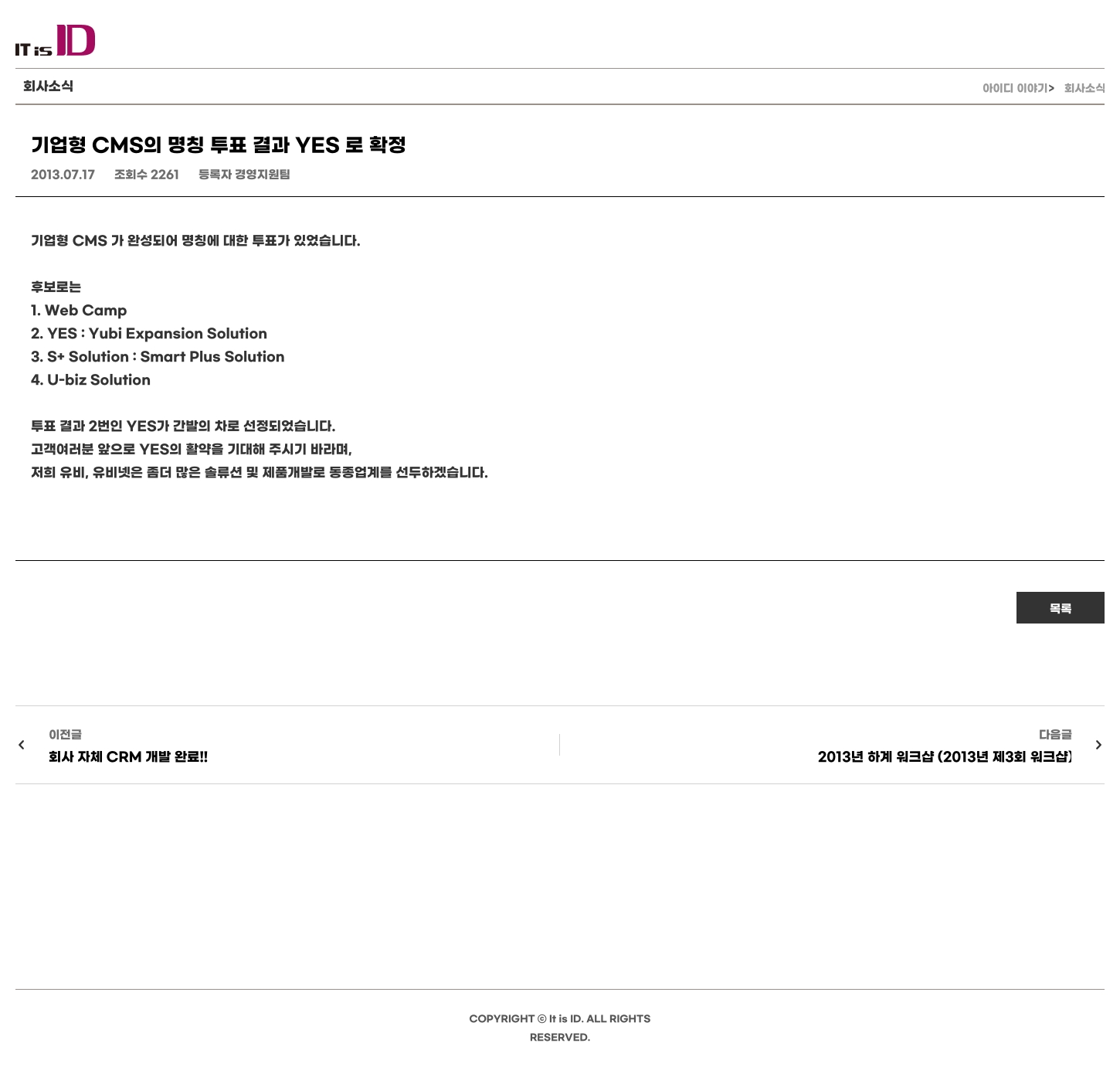 기업형 CMS의 명칭 투표 결과 YES 로 확정