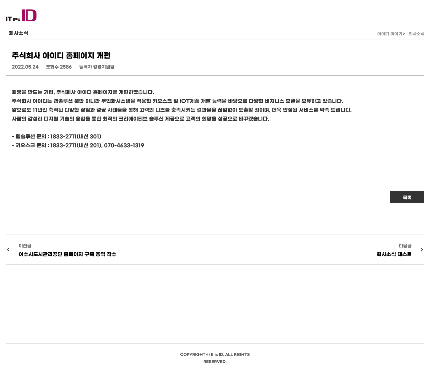 주식회사 아이디 홈페이지 개편