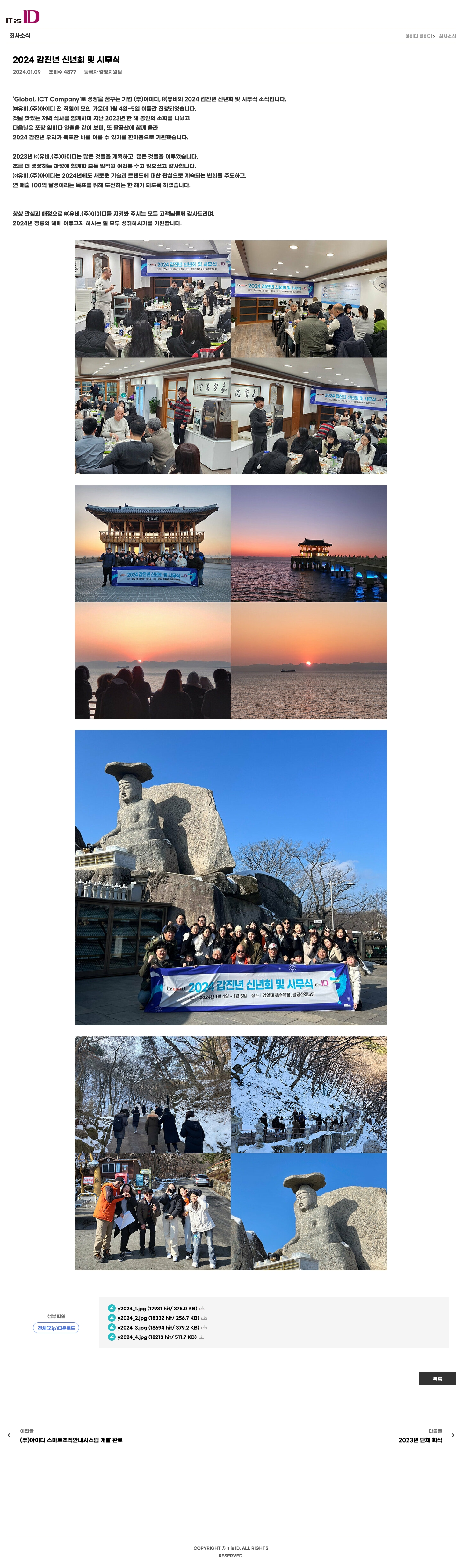 ‘Global, ICT Company’로 성장을 꿈꾸는 기업 (주)아이디, ㈜유비의 2024 갑진년 신년회 및 시무식 소식입니다.
