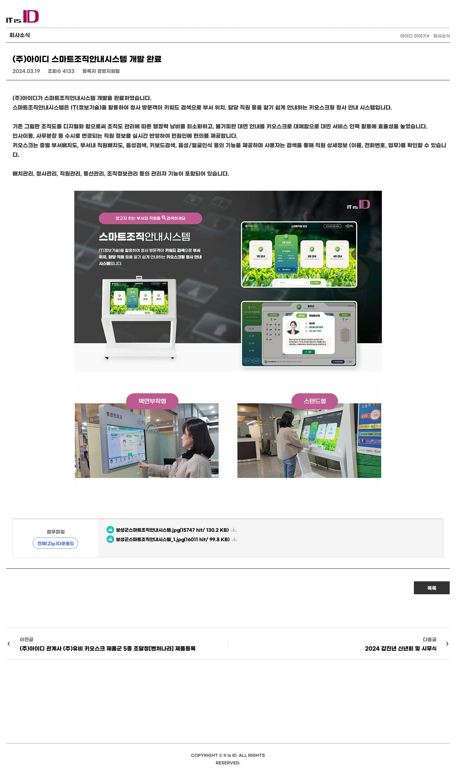 (주)아이디 스마트조직안내시스템 개발 완료