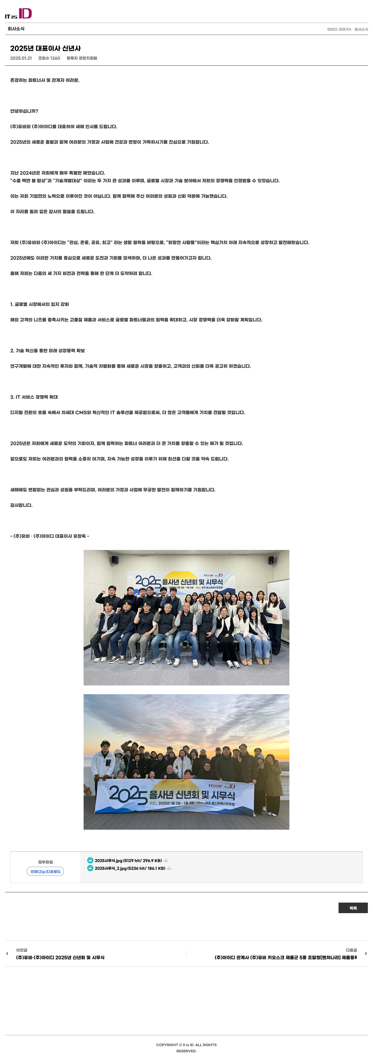 (주)유비와 (주)아이디를 대표하여 새해 인사를 드립니다.