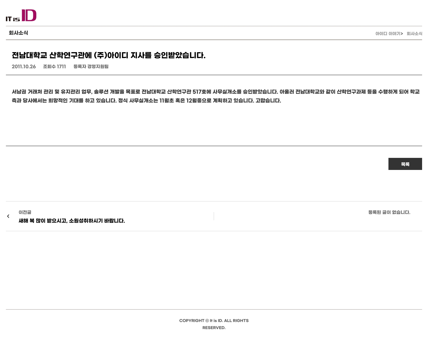 전남대학교 산학연구관에 (주)아이디 지사를 승인받았습니다.